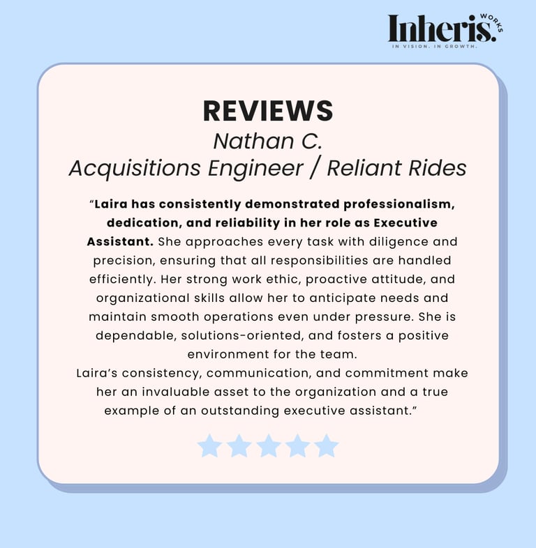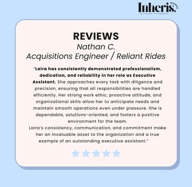 Reclaim your hours and refocus your priorities. Inheris Works makes growth feel effortless with clarity-driven systems and modern virtual support.